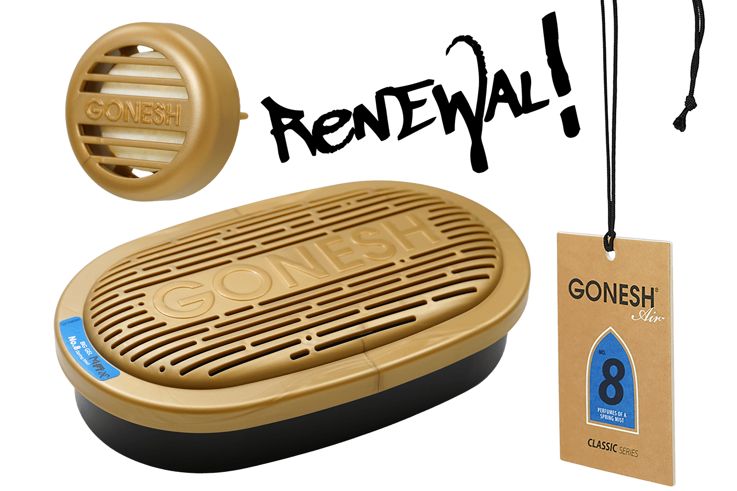2006年に発売して以来、姿形を変えないまま多くのファンに愛され続けてきたGONESH リキッドエアフレッシュナーが、2024年春、ゲルエアフレッシュナーと共にリニューアル。インセンス本来の香りにより近付き、外キャップの開口部も大きく広げて香り立ちもアップ。デザインも現代にマッチするよう洗練され、生まれ変わりました。